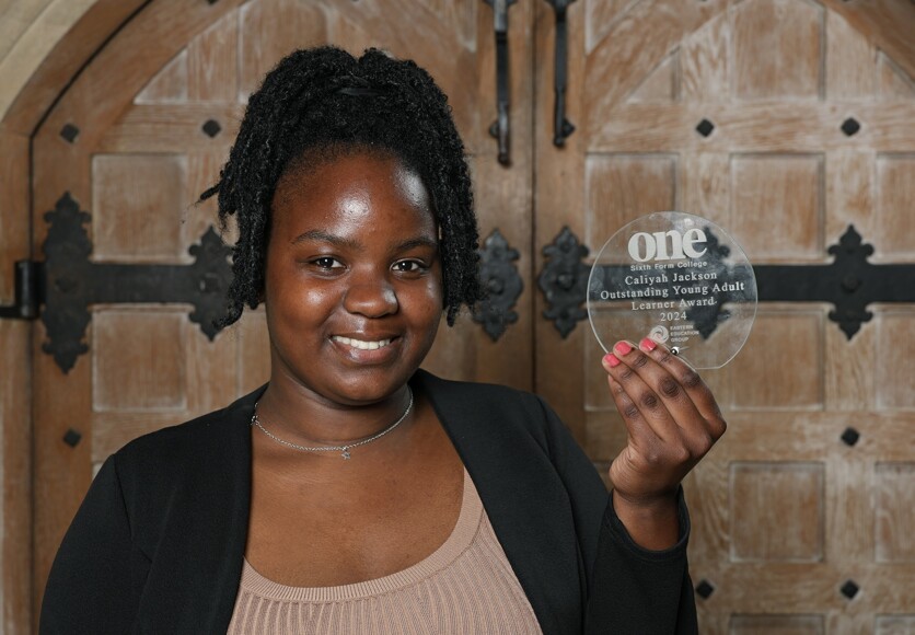 Caliyah Jackson studied English and maths at One Sixth Form College and has just secured a job - she won an outstanding young adult learner award